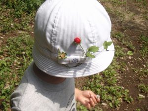キリギリスを発見!手に乗せることにチャレンジしている子もいました。